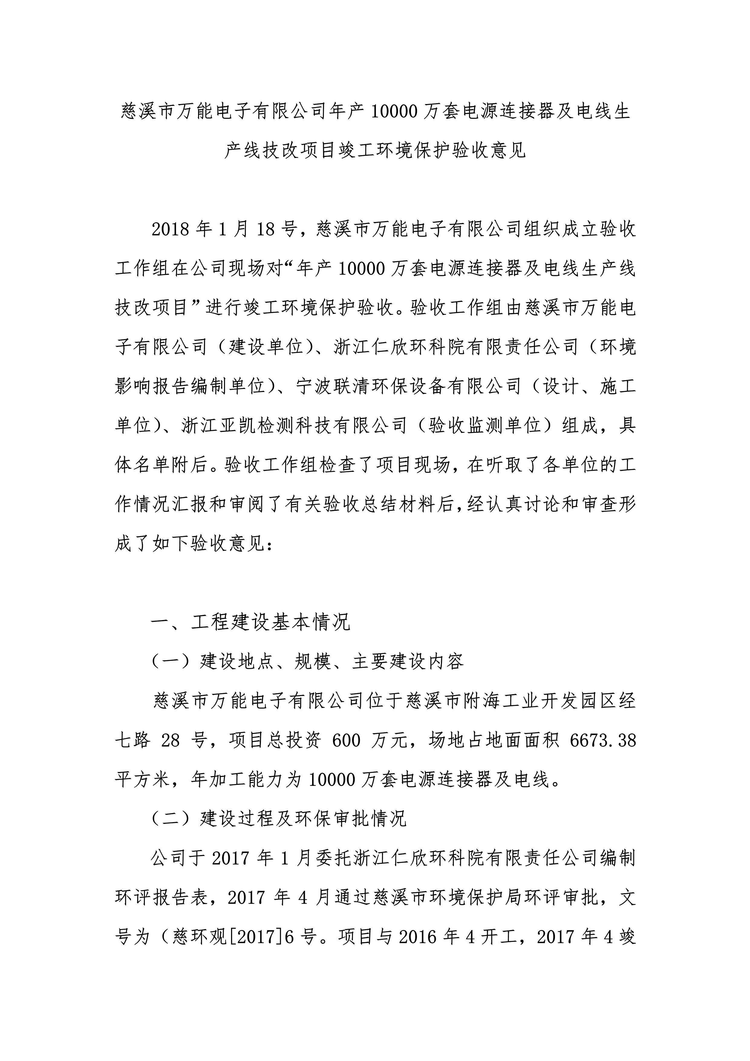 慈溪市萬能有限公司項目竣工環(huán)境保護驗收公示