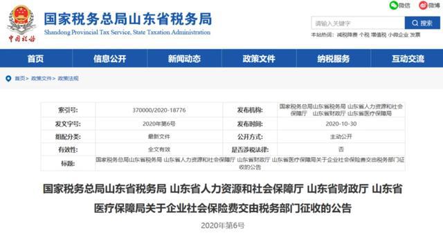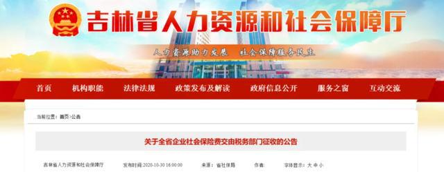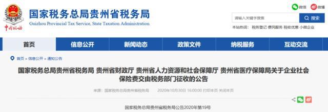 10月30日 北京、上海、山東、山西、湖南、四川、貴州、吉林、江西等地同時(shí)發(fā)布了《關(guān)于企業(yè)社會(huì)保險(xiǎn)費(fèi)交由稅務(wù)部門(mén)征收的公告》的通知。